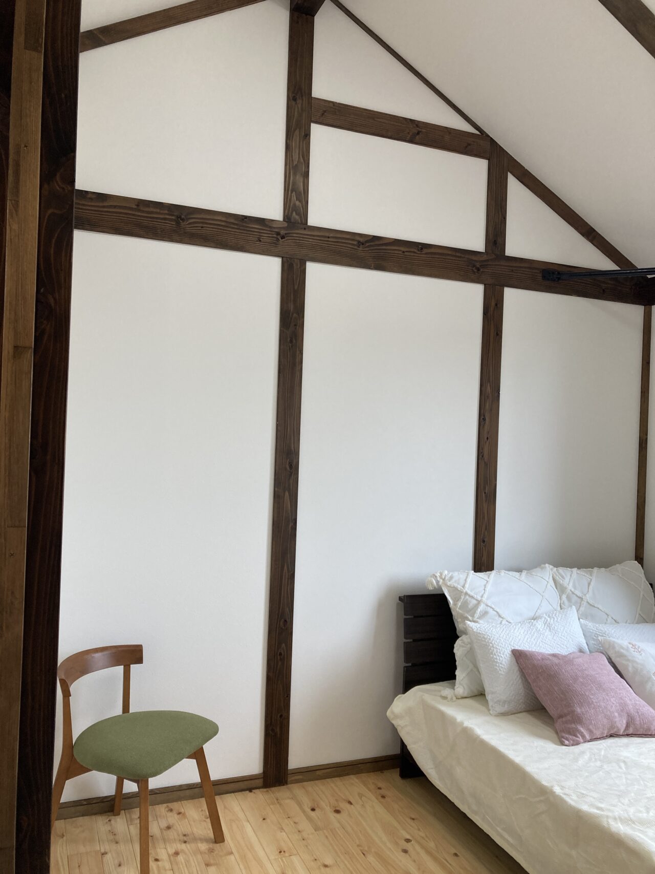 日本の伝統工法【真壁づくり】の特徴である、柱や梁が現しとなった室内では木のぬくもりや香りで心地良い時間が流れます。